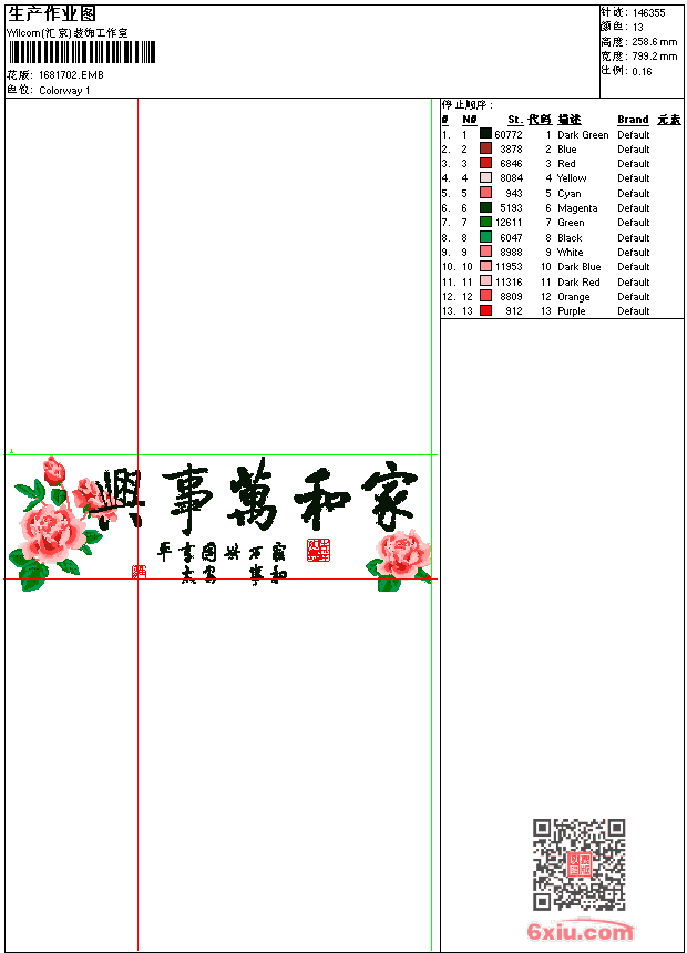 家和万事兴十字绣 点此上传花版兑乐绣币/现金 emb花版参数: 大小:268.00 KB / 尺寸:799*259[毫米] / 针数:146355针 / 线色:13 / 格式:emb / 版本:9 版带文件需绣花软件方可打开,可配色打印导出各种格式或直接上机绣。如无绣花软件可下载1:1模拟效果图。 PNG图片信息:大小:1.4 (MB) /图宽*高:3023x979(像素) 上传作者( qzx8*** ) 获得乐绣币:30个 emb下载 1:1图下载 关闭 相似花型推荐: 关公 关羽 刺绣图案 竹报平安 电脑十字绣图案 薰衣草 小熊一家 五叶花 五朵花 梅花鹿 两头小熊 白雪公主 两只小猫 gorono字母与皇冠刺绣图 wingling 毛巾绣 心 圣诞屋 圣诞老人,圣诞节刺绣素材 上一个花样:车LOGO 下一个花样:关公 关羽 刺绣图案