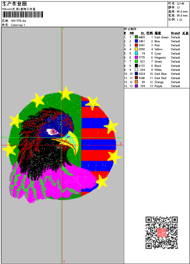 鹰标-圆形五星鹰标志 点此上传花版兑乐绣币/现金 dst花版参数: 大小:94.68 KB / 尺寸:99*97[毫米] / 针数:32146针 / 线色:13 / 格式:dst / 版本:6 版带文件需绣花软件方可打开,可配色打印导出各种格式或直接上机绣。如无绣花软件可下载1:1模拟效果图。 PNG图片信息:大小:0.2(MB) /图宽*高:373x366(像素) 上传作者( zrp8*** ) 获得乐绣币:1个 dst下载 1:1图下载 关闭 相似花型推荐: 鹰-站在枝头的雄鹰刺绣图 带眼镜的青蛙刺绣图 井底之蛙 卡通青蛙 母鸡 鸡鸣-鸣啼的公鸡刺绣图 公鸡 睡觉的羊 小狗刺绣图 绵羊 猴子卡通刺绣图 嘻哈猴 猩猩 猴子 顽皮虎 上一个花样:鹰头 下一个花样:鹰-站在枝头的雄鹰刺绣图