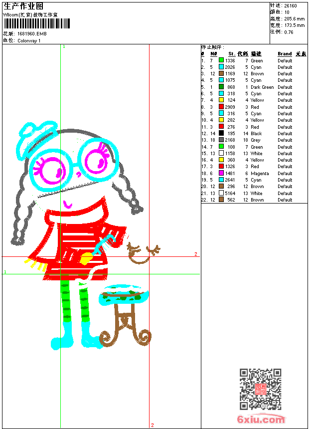 眼镜美女卡通人物 点此上传花版兑乐绣币/现金 emb花版参数: 大小:633.00 KB / 尺寸:173*206[毫米] / 针数:26160针 / 线色:10 / 格式:emb / 版本:9 版带文件需绣花软件方可打开,可配色打印导出各种格式或直接上机绣。如无绣花软件可下载1:1模拟效果图。 PNG图片信息:大小:0.4 (MB) /图宽*高:657x778(像素) 上传作者( 当爱*** ) 获得乐绣币:10个 emb下载 1:1图下载 关闭 相似花型推荐: 大花脸-京剧人物 snoopy划船-卡通 细长花条 笑脸-玩具 翅膀徽章 骷髅水溶花边 文胸内衣花 kitty标志 卡通 喜洋洋与灰太狼——喜羊羊 帽 贴布熊单车-卡通 食人花贴布 小花 匹绣 女装满幅裙花 上一个花样:美羊羊-卡通 下一个花样:大花脸-京剧人物