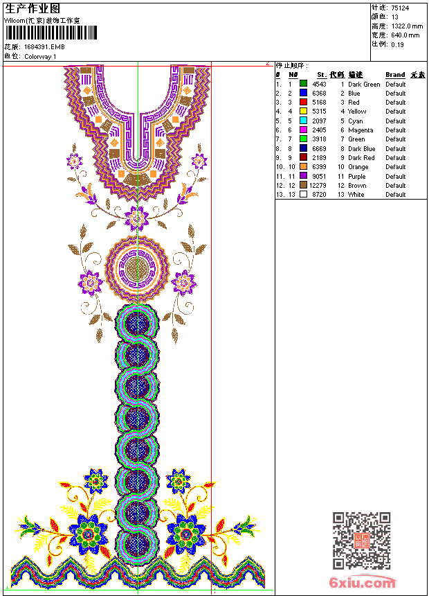 领口民族中东风格 点此上传花版兑乐绣币/现金 emb花版参数: 大小:123.00 KB / 尺寸:640*1322[毫米] / 针数:75124针 / 线色:13 / 格式:emb / 版本:9 版带文件需绣花软件方可打开,可配色打印导出各种格式或直接上机绣。如无绣花软件可下载1:1模拟效果图。 PNG图片信息:大小:5.2 (MB) /图宽*高:2421x5001(像素) 上传作者( 4188*** ) 获得乐绣币:30个 emb下载 1:1图下载 关闭 相似花型推荐: call away 帽片立体绣 水溶领花 骑马斗牛 马头 castle club 马 鹦鹉-鸟 虎头-动物 窗帘版带-单花 窗帘-整幅花 窗帘-大花 窗帘花-树叶 招财龟 抽象龙 服装花 仙鹤古松 上一个花样:前片大幅花衣 下一个花样:call away 帽片立体绣