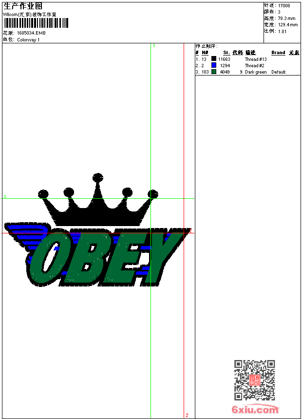 皇冠obey-帽子用平绣加立体图案 点此上传花版兑乐绣币/现金 emb花版参数: 大小:56.00 KB / 尺寸:129*78[毫米] / 针数:17008针 / 线色:3 / 格式:emb / 版本:7 版带文件需绣花软件方可打开,可配色打印导出各种格式或直接上机绣。如无绣花软件可下载1:1模拟效果图。 PNG图片信息:大小:0.2 (MB) /图宽*高:490x297(像素) 上传作者( czw1*** ) 获得乐绣币:10个 emb下载 1:1图下载 关闭 相似花型推荐: 迎客松工艺品 牡丹花 民族风衣领 简笔弥勒佛 美女 太阳仙鹤树 笑口弥勒佛 毛巾绣熊猫(平绣改版机) 奥特曼-卡通 熊大熊二 水溶条码 大型线条花衣领 前片大幅花衣 领口民族中东风格 call away 帽片立体绣 上一个花样:骨头心-帽子用平绣加立体图案 下一个花样:迎客松工艺品