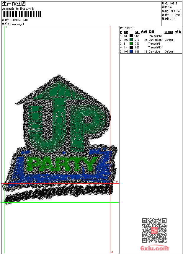 up party 帽子用平绣加立体图案 点此上传花版兑乐绣币/现金 emb花版参数: 大小:48.00 KB / 尺寸:61*69[毫米] / 针数:10816针 / 线色:4 / 格式:emb / 版本:7 版带文件需绣花软件方可打开,可配色打印导出各种格式或直接上机绣。如无绣花软件可下载1:1模拟效果图。 PNG图片信息:大小:0.1 (MB) /图宽*高:232x263(像素) 上传作者( czw1*** ) 获得乐绣币:5个 emb下载 1:1图下载 关闭 相似花型推荐: us america new york city 骨头心-帽子用平绣加立体图案 皇冠obey-帽子用平绣加立体图案 迎客松工艺品 牡丹花 民族风衣领 简笔弥勒佛 美女 太阳仙鹤树 笑口弥勒佛 毛巾绣熊猫(平绣改版机) 奥特曼-卡通 熊大熊二 水溶条码 大型线条花衣领 上一个花样:章仔-帽子用平绣加立体图案 下一个花样:us america new york city