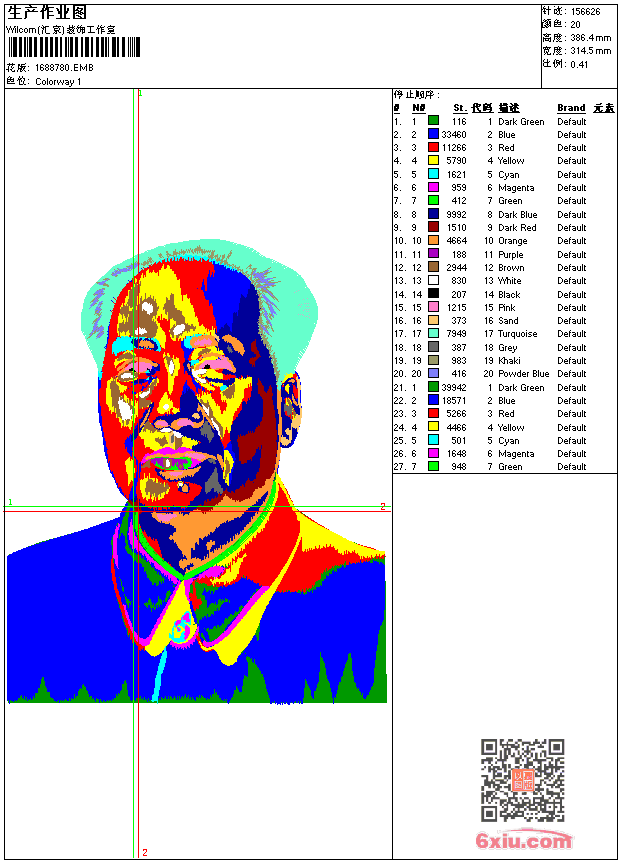 毛主席 点此上传花版兑乐绣币/现金 emb花版参数: 大小:281.50 KB / 尺寸:315*386[毫米] / 针数:156626针 / 线色:20 / 格式:emb / 版本:9 版带文件需绣花软件方可打开,可配色打印导出各种格式或直接上机绣。如无绣花软件可下载1:1模拟效果图。 PNG图片信息:大小:2.5 (MB) /图宽*高:1190x1462(像素) 上传作者( 老虎*** ) 获得乐绣币:20个 emb下载 1:1图下载 关闭 相似花型推荐: 米妮 小男孩 白菊花 鸟花-听春鸟于春朝-工艺精品 鲤鱼 女熊 领口水溶花 领口水溶 牡丹花 华堂春暖 花开富贵 精品 工艺 家和万事兴 观世音菩萨 龙字 艺术字 囍字 藏文艺术字 上一个花样:刘德华 下一个花样:米妮