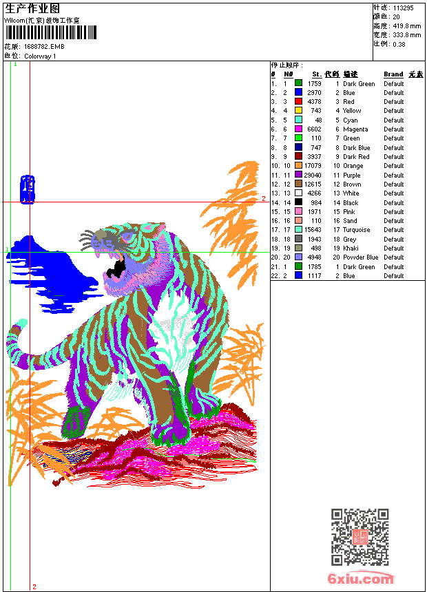 呼啸山林 点此上传花版兑乐绣币/现金 emb花版参数: 大小:418.00 KB / 尺寸:334*420[毫米] / 针数:113295针 / 线色:20 / 格式:emb / 版本:9 版带文件需绣花软件方可打开,可配色打印导出各种格式或直接上机绣。如无绣花软件可下载1:1模拟效果图。 PNG图片信息:大小:2.5 (MB) /图宽*高:1263x1588(像素) 上传作者( 老虎*** ) 获得乐绣币:12个 emb下载 1:1图下载 关闭 相似花型推荐: 刘德华 毛主席 米妮 小男孩 白菊花 鸟花-听春鸟于春朝-工艺精品 鲤鱼 女熊 领口水溶花 领口水溶 牡丹花 华堂春暖 花开富贵 精品 工艺 家和万事兴 观世音菩萨 龙字 艺术字 上一个花样:飞鹤送福 下一个花样:刘德华