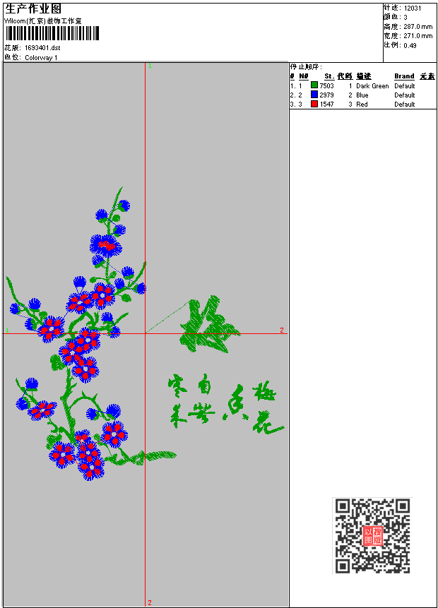 梅花 点此上传花版兑乐绣币/现金 dst花版参数: 大小:35.75 KB / 尺寸:271*287[毫米] / 针数:12031针 / 线色:3 / 格式:dst / 版本:6 版带文件需绣花软件方可打开,可配色打印导出各种格式或直接上机绣。如无绣花软件可下载1:1模拟效果图。 PNG图片信息:大小:0.5(MB) /图宽*高:1026x1086(像素) 上传作者( lct6*** ) 获得乐绣币:20个 dst下载 1:1图下载 关闭 相似花型推荐: 蝴蝶喜字 月亮熊 宝骏标记 米奇兄弟 竹子 一帆风顺 小熊 史努比 老虎啸群山精品动物 狮子动物 龙 鸟动物传统唐装中老年 鸟动物鹦鹉 花经典裙传统 裙花传统 上一个花样:松鹤延年 下一个花样:蝴蝶喜字