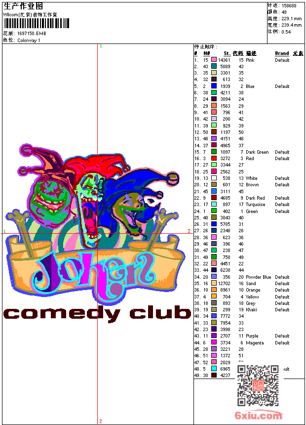 小丑派对 点此上传花版兑乐绣币/现金 emb花版参数: 大小:552.50 KB / 尺寸:239*229[毫米] / 针数:158688针 / 线色:49 / 格式:emb / 版本:6 版带文件需绣花软件方可打开,可配色打印导出各种格式或直接上机绣。如无绣花软件可下载1:1模拟效果图。 PNG图片信息:大小:1.2 (MB) /图宽*高:906x867(像素) 上传作者( 硬度*** ) 获得乐绣币:10个 emb下载 1:1图下载 关闭 相似花型推荐: 男人爱爬树 奥迪车标AUDI 广汽丰田toyota车标 奔驰BENZ车标 宝马车标BMW别摸我 孔雀鱼 古比鱼 Guppy 熊贴布 NBA标 NBA标 米奇 小熊pooh 狮子章仔男 皇冠 爱心男女亲吻 贴布鸟 上一个花样:鳄鱼 下一个花样:男人爱爬树