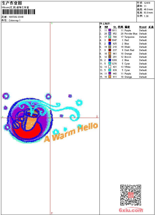 杯香 点此上传花版兑乐绣币/现金 emb花版参数: 大小:74.50 KB / 尺寸:94*50[毫米] / 针数:12419针 / 线色:11 / 格式:emb / 版本:6 版带文件需绣花软件方可打开,可配色打印导出各种格式或直接上机绣。如无绣花软件可下载1:1模拟效果图。 PNG图片信息:大小:0.1 (MB) /图宽*高:356x189(像素) 上传作者( 硬度*** ) 获得乐绣币:10个 emb下载 1:1图下载 关闭 相似花型推荐: 马 章仔 帆船 洋人 字母 章仔 滑雪章仔 章仔 摔交标志 章仔 显微镜 按摩标志 字母 字母 纸牌 上一个花样:A&F 麋鹿 下一个花样:马