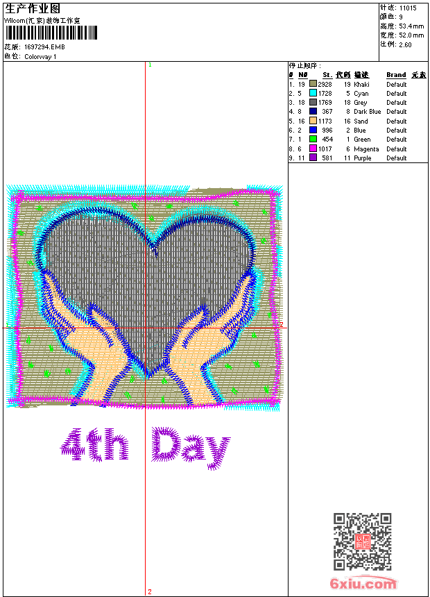 心形章仔 点此上传花版兑乐绣币/现金 emb花版参数: 大小:59.50 KB / 尺寸:52*53[毫米] / 针数:11015针 / 线色:9 / 格式:emb / 版本:6 版带文件需绣花软件方可打开,可配色打印导出各种格式或直接上机绣。如无绣花软件可下载1:1模拟效果图。 PNG图片信息:大小:0.1 (MB) /图宽*高:197x203(像素) 上传作者( 硬度*** ) 获得乐绣币:10个 emb下载 1:1图下载 关闭 相似花型推荐: 跳舞男女 章仔 章仔 牛字母 单针花 花曲线 H字母 翅膀 北极熊 壁虎 A&F 麋鹿 杯香 马 章仔 帆船 上一个花样:人像 下一个花样:跳舞男女