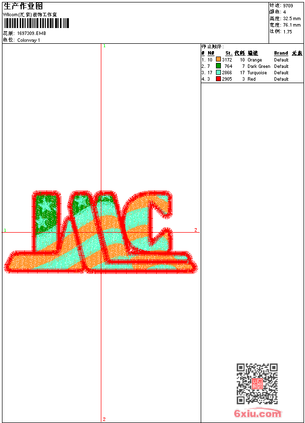 字母 点此上传花版兑乐绣币/现金 emb花版参数: 大小:52.00 KB / 尺寸:76*33[毫米] / 针数:9711针 / 线色:4 / 格式:emb / 版本:6 版带文件需绣花软件方可打开,可配色打印导出各种格式或直接上机绣。如无绣花软件可下载1:1模拟效果图。 PNG图片信息:大小:0.1 (MB) /图宽*高:288x124(像素) 上传作者( 硬度*** ) 获得乐绣币:10个 emb下载 1:1图下载 关闭 相似花型推荐: xerox标志 鹰 狗狗 24小时 十字绣鸟 独眼海盗 赛事 小恶魔 马 鹿 章仔 人物 章仔 人像 心形章仔 上一个花样:马 下一个花样:xerox标志
