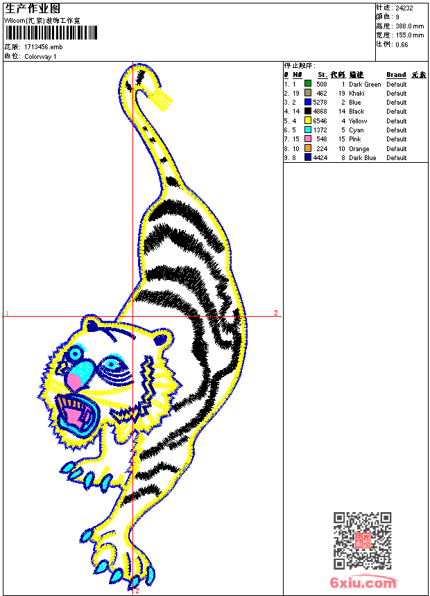 老虎-饿虎下山-排骨虎 点此上传花版兑乐绣币/现金 emb花版参数: 大小:170.00 KB / 尺寸:155*388[毫米] / 针数:24232针 / 线色:9 / 格式:emb / 版本:9 版带文件需绣花软件方可打开,可配色打印导出各种格式或直接上机绣。如无绣花软件可下载1:1模拟效果图。 PNG图片信息:大小:0.6 (MB) /图宽*高:587x1468(像素) 上传作者( 1115*** ) 获得乐绣币:个 emb下载 1:1图下载 关闭 相似花型推荐: 明清外景工艺精品 名人伟人头像工艺精品 美女工艺精品 毛主席乱针绣工艺精品 水溶领花 7UP 7喜标志 7喜小子-7UP 鱼 传统民族吉祥鲤鱼牡丹花 小熊 虎 两只老虎-章仔 中东大袍抽象几何 中东大袍抽象花 中东领满幅大袍 中东大袍领摆满幅 中东大袍领摆满幅 上一个花样:薰衣草 下一个花样:明清外景工艺精品