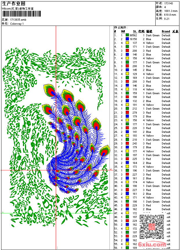 孔雀花 点此上传花版兑乐绣币/现金 emb花版参数: 大小:981.50 KB / 尺寸:611*1001[毫米] / 针数:173143针 / 线色:4 / 格式:emb / 版本:2006 版带文件需绣花软件方可打开,可配色打印导出各种格式或直接上机绣。如无绣花软件可下载1:1模拟效果图。 PNG图片信息:大小:6.1 (MB) /图宽*高:2311x3788(像素) 上传作者( hcx2*** ) 获得乐绣币:个 emb下载 1:1图下载 关闭 相似花型推荐: 抽象花形 狐狸-卡通 羽毛花 俄罗斯套娃娃-卡通 珠片大花樣-窗帘 佛与狐狸-达摩和尚精品工艺品 一帆風順-精品工艺品 松鶴延年-精品工艺品 人物(爱情)卡通 骷髅头 薰衣草 老虎-饿虎下山-排骨虎 明清外景工艺精品 名人伟人头像工艺精品 美女工艺精品 上一个花样:鸟章仔 下一个花样:抽象花形