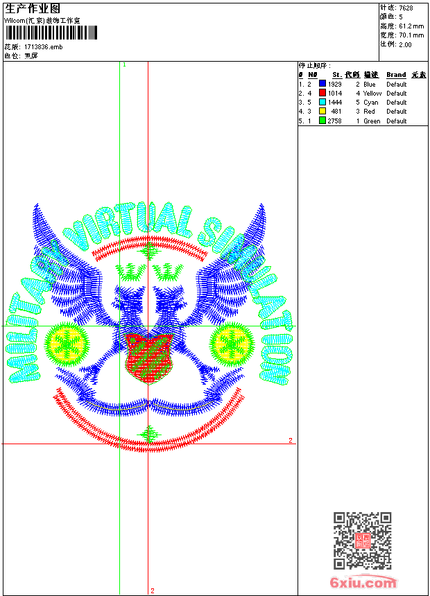 鸟章仔 点此上传花版兑乐绣币/现金 emb花版参数: 大小:63.00 KB / 尺寸:70*61[毫米] / 针数:7628针 / 线色:5 / 格式:emb / 版本:9 版带文件需绣花软件方可打开,可配色打印导出各种格式或直接上机绣。如无绣花软件可下载1:1模拟效果图。 PNG图片信息:大小:0.1 (MB) /图宽*高:266x232(像素) 上传作者( tzdx*** ) 获得乐绣币:个 emb下载 1:1图下载 关闭 相似花型推荐: 孔雀花 抽象花形 狐狸-卡通 羽毛花 俄罗斯套娃娃-卡通 珠片大花樣-窗帘 佛与狐狸-达摩和尚精品工艺品 一帆風順-精品工艺品 松鶴延年-精品工艺品 人物(爱情)卡通 骷髅头 薰衣草 老虎-饿虎下山-排骨虎 明清外景工艺精品 名人伟人头像工艺精品 上一个花样:翅膀章仔 下一个花样:孔雀花