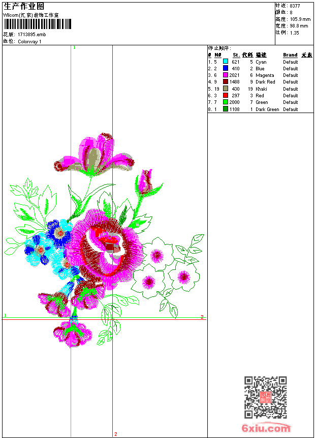玫瑰花 点此上传花版兑乐绣币/现金 emb花版参数: 大小:300.50 KB / 尺寸:99*106[毫米] / 针数:8377针 / 线色:8 / 格式:emb / 版本:e1.5 版带文件需绣花软件方可打开,可配色打印导出各种格式或直接上机绣。如无绣花软件可下载1:1模拟效果图。 PNG图片信息:大小:0.1 (MB) /图宽*高:374x401(像素) 上传作者( 做绣*** ) 获得乐绣币:个 emb下载 1:1图下载 关闭 相似花型推荐: 蝴蝶 花跟小鸟 笼子蜻蜓 老鹰章仔 马章仔 章仔 翅膀章仔 鸟章仔 孔雀花 抽象花形 狐狸-卡通 羽毛花 俄罗斯套娃娃-卡通 珠片大花樣-窗帘 佛与狐狸-达摩和尚精品工艺品 上一个花样:亮片珠片鱼海豚 下一个花样:蝴蝶