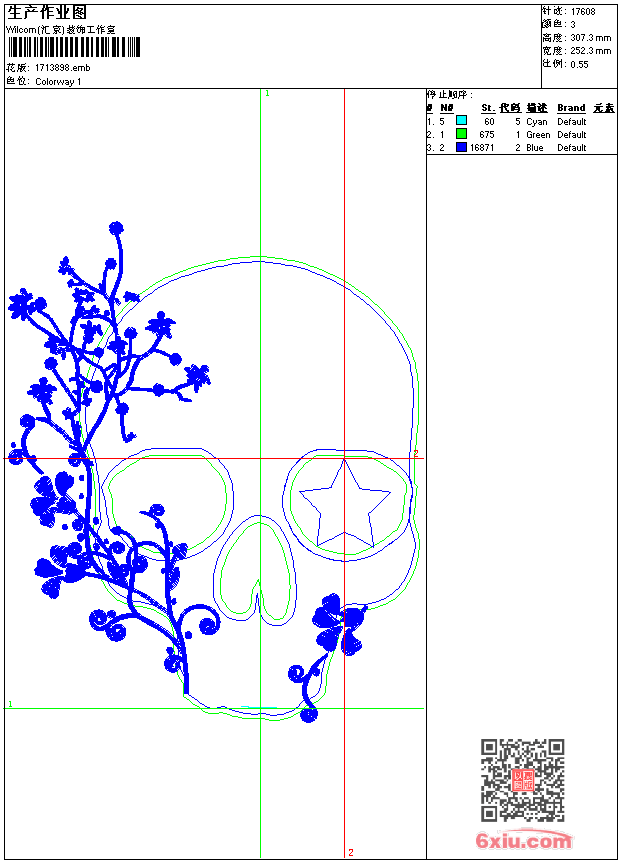 骷髅花 点此上传花版兑乐绣币/现金 emb花版参数: 大小:114.00 KB / 尺寸:252*307[毫米] / 针数:17608针 / 线色:3 / 格式:emb / 版本:e1.5 版带文件需绣花软件方可打开,可配色打印导出各种格式或直接上机绣。如无绣花软件可下载1:1模拟效果图。 PNG图片信息:大小:0.4 (MB) /图宽*高:955x1163(像素) 上传作者( 做绣*** ) 获得乐绣币:个 emb下载 1:1图下载 关闭 相似花型推荐: 抽纱花 亮片珠片鱼海豚 玫瑰花 蝴蝶 花跟小鸟 笼子蜻蜓 老鹰章仔 马章仔 章仔 翅膀章仔 鸟章仔 孔雀花 抽象花形 狐狸-卡通 羽毛花 上一个花样:牛头章仔 下一个花样:抽纱花