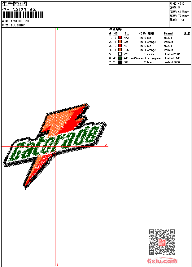 Gatorade 给他力 标志 点此上传花版兑乐绣币/现金 emb花版参数: 大小:753.50 KB / 尺寸:74*61[毫米] / 针数:6779针 / 线色:5 / 格式:emb / 版本:9 版带文件需绣花软件方可打开,可配色打印导出各种格式或直接上机绣。如无绣花软件可下载1:1模拟效果图。 PNG图片信息:大小:0.1 (MB) /图宽*高:280x233(像素) 上传作者( jcgu*** ) 获得乐绣币:个 emb下载 1:1图下载 关闭 相似花型推荐: Mountain Dew 激浪标志 百事可乐MAX 标志 百事可乐PEPSI 牛头章仔 骷髅花 抽纱花 亮片珠片鱼海豚 玫瑰花 蝴蝶 花跟小鸟 笼子蜻蜓 老鹰章仔 马章仔 章仔 翅膀章仔 上一个花样:幸运鸟 下一个花样:Mountain Dew 激浪标志