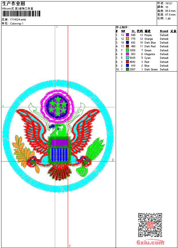 鹰章仔 点此上传花版兑乐绣币/现金 emb花版参数: 大小:112.00 KB / 尺寸:88*89[毫米] / 针数:18121针 / 线色:10 / 格式:emb / 版本:2006 版带文件需绣花软件方可打开,可配色打印导出各种格式或直接上机绣。如无绣花软件可下载1:1模拟效果图。 PNG图片信息:大小:0.2 (MB) /图宽*高:333x336(像素) 上传作者( swww*** ) 获得乐绣币:个 emb下载 1:1图下载 关闭 相似花型推荐: 鱼-唐装吉祥传统 水溶满幅 海豚-毛巾绣 满幅衣花馬甲传统复杂 骷髅先生 骷髅 轮船 牛头 JEEP标志 高尔夫 章仔 章仔 飞机 自由女神 老虎 上一个花样:水溶满幅-内有-山诺原文件和DST 下一个花样:鱼-唐装吉祥传统