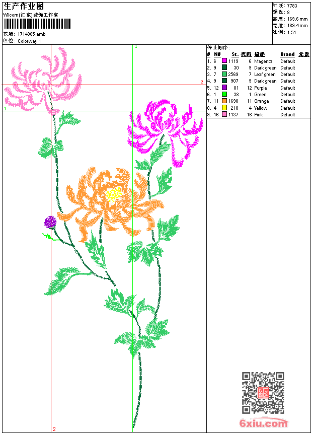 菊花 点此上传花版兑乐绣币/现金 emb花版参数: 大小:130.50 KB / 尺寸:189*170[毫米] / 针数:7783针 / 线色:8 / 格式:emb / 版本:7 版带文件需绣花软件方可打开,可配色打印导出各种格式或直接上机绣。如无绣花软件可下载1:1模拟效果图。 PNG图片信息:大小:0.1 (MB) /图宽*高:717x642(像素) 上传作者( 明年*** ) 获得乐绣币:30个 emb下载 1:1图下载 关闭 相似花型推荐: 鸳鸯-精品 熊猫 V领 鹅 牡丹花精品荣华富贵 [平绣] 伦敦奥运标志 London Olympic 鹰 水溶满幅-内有DST和山诺原带下载 凤尾花-牛仔裤 章仔 福禄寿喜-精品 POLO-金字塔皇冠章仔 牡丹大花 水溶满幅-内有-山诺原文件和DST 水溶满幅-内有-山诺原文件和DST 上一个花样:龙纹 下一个花样:鸳鸯-精品