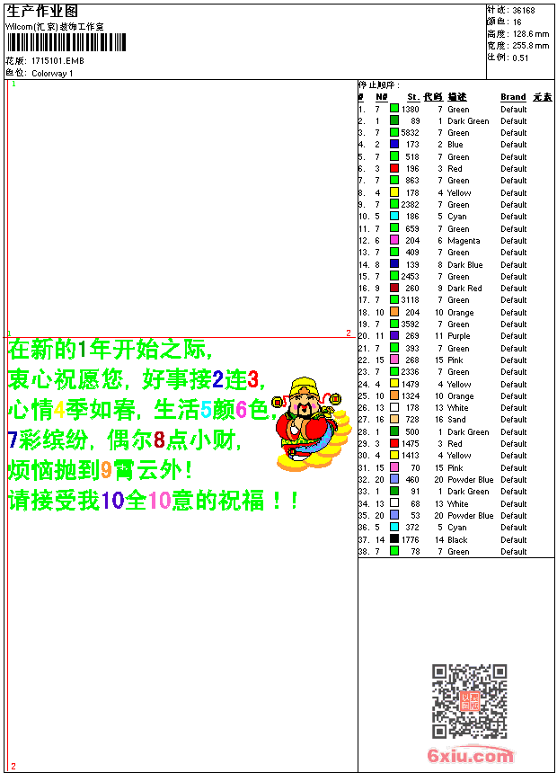 祝愿您+财神祝福-精品 点此上传花版兑乐绣币/现金 emb花版参数: 大小:236.00 KB / 尺寸:256*129[毫米] / 针数:36168针 / 线色:16 / 格式:emb / 版本:9 版带文件需绣花软件方可打开,可配色打印导出各种格式或直接上机绣。如无绣花软件可下载1:1模拟效果图。 PNG图片信息:大小:0.3 (MB) /图宽*高:968x487(像素) 上传作者( jcgu*** ) 获得乐绣币:个 emb下载 1:1图下载 关闭 相似花型推荐: 大花 前胸标-章仔 龙纹 菊花 鸳鸯-精品 熊猫 V领 鹅 牡丹花精品荣华富贵 [平绣] 伦敦奥运标志 London Olympic 鹰 水溶满幅-内有DST和山诺原带下载 凤尾花-牛仔裤 章仔 福禄寿喜-精品 上一个花样:戴安娜-精品乱针绣 人物 头像 下一个花样:大花