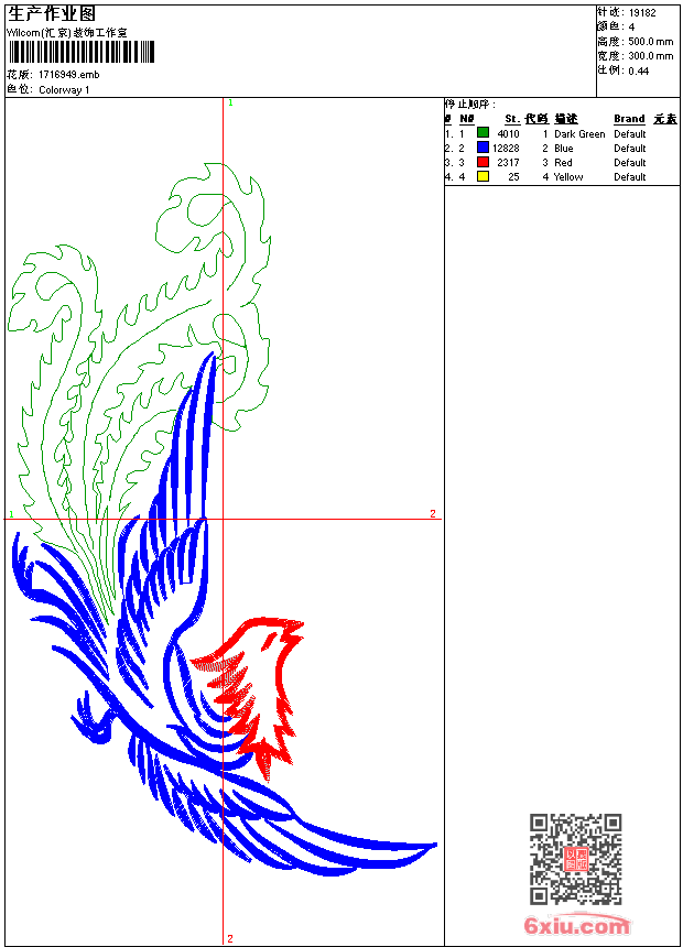 凤-本图只有凤,没有龙 点此上传花版兑乐绣币/现金 emb花版参数: 大小:55.00 KB / 尺寸:300*500[毫米] / 针数:19182针 / 线色:4 / 格式:emb / 版本:9 版带文件需绣花软件方可打开,可配色打印导出各种格式或直接上机绣。如无绣花软件可下载1:1模拟效果图。 PNG图片信息:大小:0.7 (MB) /图宽*高:1135x1892(像素) 上传作者( 任中*** ) 获得乐绣币:个 emb下载 1:1图下载 关闭 相似花型推荐: 熊-卡通贴布 老鹰 女神 灯塔 美羊羊 金童玉女-男 金童玉女-女 鞋垫-龙凤呈祥 飞鹰-男装 鹰头章仔 [十字绣] 富贵吉祥-精品工艺 古典美女图-精品工艺 中东衬衣前后福大花 景-庐山风光-精品工艺[乱针刺绣] [十字绣] 荷花_出水芙蓉-精品工艺 上一个花样:龙-本图只有龙 没有凤 下一个花样:熊-卡通贴布