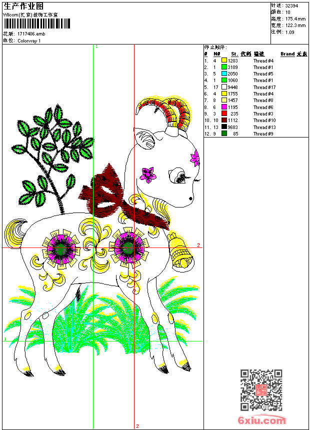 羊 点此上传花版兑乐绣币/现金 emb花版参数: 大小:366.50 KB / 尺寸:122*175[毫米] / 针数:32394针 / 线色:10 / 格式:emb / 版本:9 版带文件需绣花软件方可打开,可配色打印导出各种格式或直接上机绣。如无绣花软件可下载1:1模拟效果图。 PNG图片信息:大小:0.5 (MB) /图宽*高:463x664(像素) 上传作者( 1887*** ) 获得乐绣币:个 emb下载 1:1图下载 关闭 相似花型推荐: 水溶绣-鱼 米奇 领花十字绣 飞虎队标志 心形 卡通猴子 红牛RED BULL 窗帘花 龙工艺精品 青龙工艺精品 宗教与和平民族工艺精品 金桂秋香风景挂画工艺精品 中堂挂画春夏秋冬[夏]荷花-工艺精品 春夏秋冬-夏鸟-中堂挂画 工艺精品 红莲禧兆图工艺精品 上一个花样:雄师 下一个花样:水溶绣-鱼