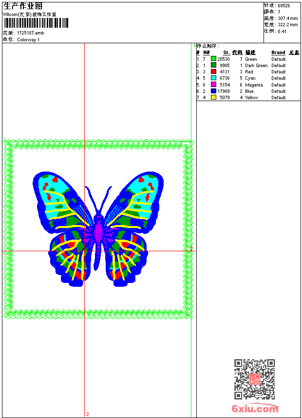 蝴蝶 点此上传花版兑乐绣币/现金 emb花版参数: 大小:218.50 KB / 尺寸:322*307[毫米] / 针数:69526针 / 线色:7 / 格式:emb / 版本:2006 版带文件需绣花软件方可打开,可配色打印导出各种格式或直接上机绣。如无绣花软件可下载1:1模拟效果图。 PNG图片信息:大小:1.2 (MB) /图宽*高:1219x1163(像素) 上传作者( jinh*** ) 获得乐绣币:个 emb下载 1:1图下载 关闭 相似花型推荐: 玫瑰花 老虎 满天蝴蝶 鸟语花香 腾龙 左右手 孔雀 人物头像 抽象 鸟吉祥树枝 珠片大嘴 凤凰 观音-精品 love嘴唇 前幅花样 龙凤吉祥 上一个花样:龙 下一个花样:玫瑰花