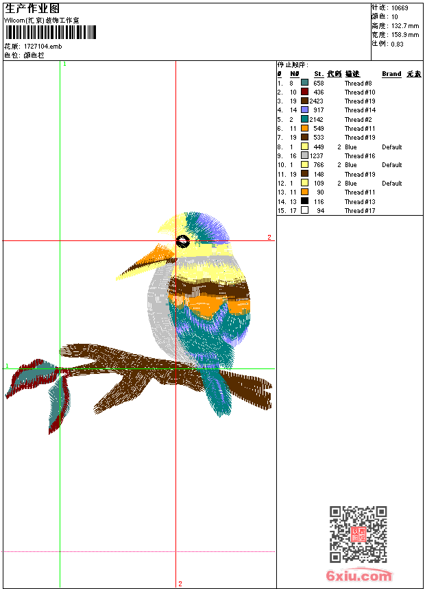 鸟儿 点此上传花版兑乐绣币/现金 emb花版参数: 大小:71.00 KB / 尺寸:159*133[毫米] / 针数:10669针 / 线色:10 / 格式:emb / 版本:e1.5 版带文件需绣花软件方可打开,可配色打印导出各种格式或直接上机绣。如无绣花软件可下载1:1模拟效果图。 PNG图片信息:大小:0.3 (MB) /图宽*高:602x503(像素) 上传作者( cq_w*** ) 获得乐绣币:30个 emb下载 1:1图下载 关闭 相似花型推荐: 链条4色-特种绣 玫瑰花 狼狗 牡丹花大花-百花丛中 蝴蝶-大花 鸟-爱 鸟 玉兰 精品 鸟 花 精品 抽象线条 鸳鸯花 荷花佛堂坐垫 站立小熊-卡通 开车熊 鸟 梅花 上一个花样:十字绣条带-民族衣服上身 下一个花样:链条4色-特种绣
