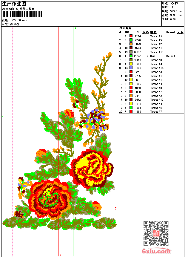牡丹花-百花争艳 点此上传花版兑乐绣币/现金 emb花版参数: 大小:625.50 KB / 尺寸:339*530[毫米] / 针数:95685针 / 线色:11 / 格式:emb / 版本:e1.5 版带文件需绣花软件方可打开,可配色打印导出各种格式或直接上机绣。如无绣花软件可下载1:1模拟效果图。 PNG图片信息:大小:2.6 (MB) /图宽*高:1284x2005(像素) 上传作者( cq_w*** ) 获得乐绣币:100个 emb下载 1:1图下载 关闭 相似花型推荐: 十字绣条带-民族衣服上身 鸟儿 链条4色-特种绣 玫瑰花 狼狗 牡丹花大花-百花丛中 蝴蝶-大花 鸟-爱 鸟 玉兰 精品 鸟 花 精品 抽象线条 鸳鸯花 荷花佛堂坐垫 站立小熊-卡通 开车熊 上一个花样:十字绣玫瑰花-衣服上身 下一个花样:十字绣条带-民族衣服上身