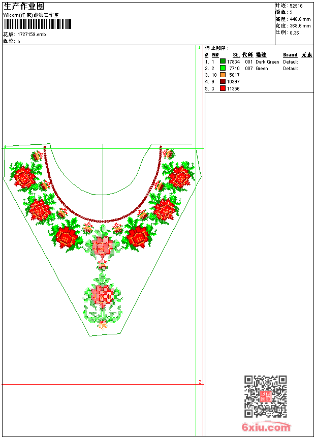 十字绣玫瑰花衣领 点此上传花版兑乐绣币/现金 emb花版参数: 大小:300.50 KB / 尺寸:369*447[毫米] / 针数:52916针 / 线色:5 / 格式:emb / 版本:9 版带文件需绣花软件方可打开,可配色打印导出各种格式或直接上机绣。如无绣花软件可下载1:1模拟效果图。 PNG图片信息:大小:0.8 (MB) /图宽*高:1395x1690(像素) 上传作者( yuri*** ) 获得乐绣币:10个 emb下载 1:1图下载 关闭 相似花型推荐: 豹pumas 抽象鱼 外国警察章police 酒杯 老爷车 脚掌 男polo章 人物 鬼-ghost-笑脸 印第安人 绣花枕头一肚草-花条-装饰 绣花枕头一肚草-花条-装饰 绣花枕头一肚草-花条-装饰 鸳鸯荷花-精品 十字绣玫瑰花-衣服上身-民族 上一个花样:十字绣衣领 下一个花样:豹pumas