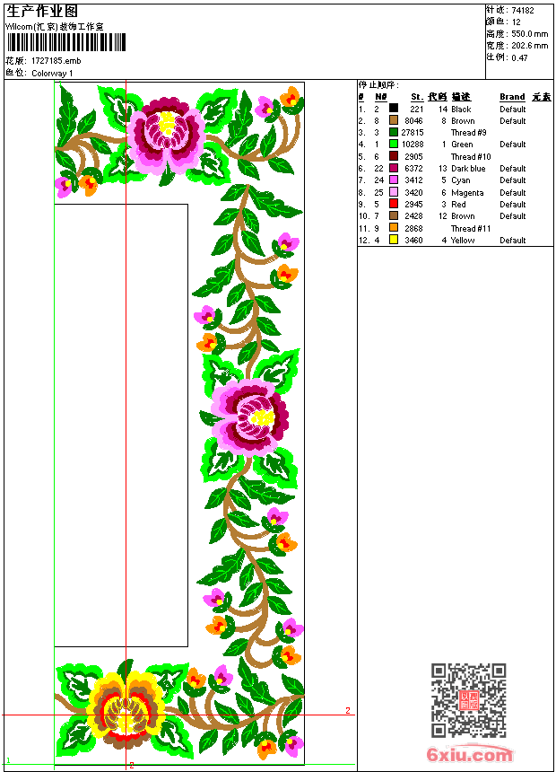 花-条带 点此上传花版兑乐绣币/现金 emb花版参数: 大小:276.00 KB / 尺寸:203*550[毫米] / 针数:74182针 / 线色:12 / 格式:emb / 版本:9 版带文件需绣花软件方可打开,可配色打印导出各种格式或直接上机绣。如无绣花软件可下载1:1模拟效果图。 PNG图片信息:大小:1.2 (MB) /图宽*高:767x2081(像素) 上传作者( yuri*** ) 获得乐绣币:5个 emb下载 1:1图下载 关闭 相似花型推荐: 十字绣 玫瑰花 民族绣花枕头_装饰 蝴蝶花-唐装旗袍中国风 团圆 十字绣 衣领 十字绣 条带 十字绣 条带 十字绣 玫瑰花 装饰 十字绣 玫瑰花 衣领 衣领 十字绣 衣领 十字绣 衣领 十字绣 衣领 十字绣花_民族绣花枕头_装饰 十字绣花_民族绣花枕头_装饰 十字绣花_民族绣花枕头_装饰 上一个花样:十字绣花_民族绣花枕头_装饰 下一个花样:十字绣 玫瑰花