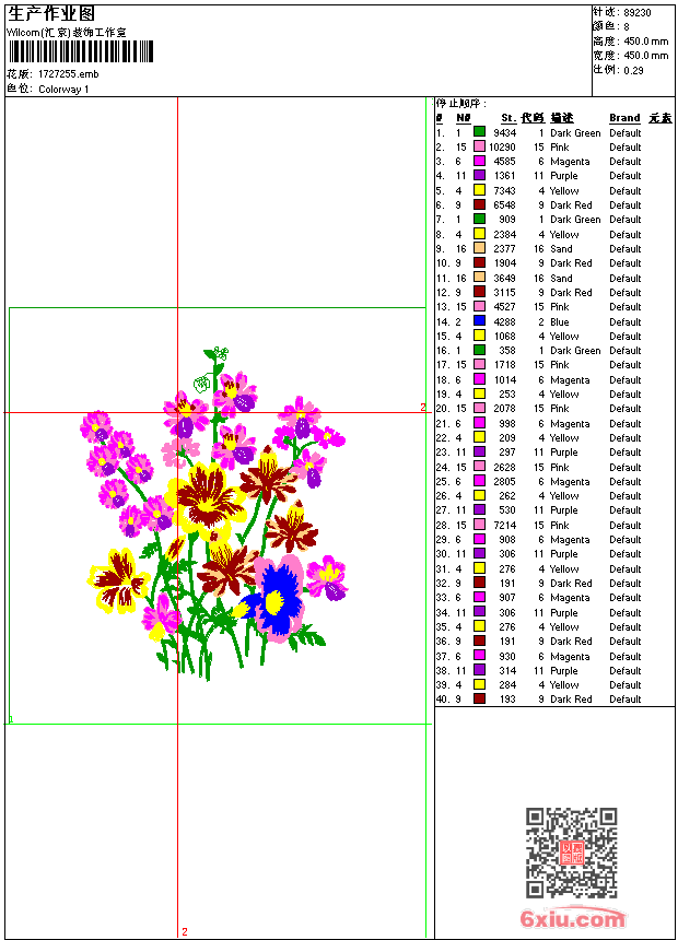 花草 点此上传花版兑乐绣币/现金 emb花版参数: 大小:430.50 KB / 尺寸:450*450[毫米] / 针数:89230针 / 线色:8 / 格式:emb / 版本:2006 版带文件需绣花软件方可打开,可配色打印导出各种格式或直接上机绣。如无绣花软件可下载1:1模拟效果图。 PNG图片信息:大小:1.5 (MB) /图宽*高:1703x1703(像素) 上传作者( hutu*** ) 获得乐绣币:10个 emb下载 1:1图下载 关闭 相似花型推荐: 家纺毛巾绣 水溶 美人鱼 强盗坏人标 滑雪人 赛旗 鹰eagles 汽车 水上飞机 鹰UBC标 骷髅章 天鹅 十字绣 玫瑰花 台布 装饰 十字绣 玫瑰花 装饰 衣领 上一个花样:猫-贴布 下一个花样:家纺毛巾绣