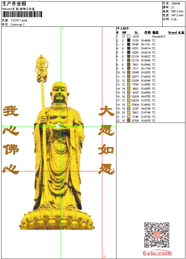 佛-地藏王乱针绣-工艺精品 点此上传花版兑乐绣币/现金 emb花版参数: 大小:1.01 MB / 尺寸:347*545[毫米] / 针数:188048针 / 线色:21 / 格式:emb / 版本:9 版带文件需绣花软件方可打开,可配色打印导出各种格式或直接上机绣。如无绣花软件可下载1:1模拟效果图。 PNG图片信息:大小:2.5 (MB) /图宽*高:1314x2063(像素) 上传作者( w448*** ) 获得乐绣币:300个 emb下载 1:1图下载 关闭 相似花型推荐: 虎-猛老虎-骷髅-精品 牛-大角牛-卡通 梅花-鸟-精品工艺品 凤凰-鹰-吉祥 花朵插针 牛头骷髅毛巾绣 毛巾绣裙摆 毛巾绣裙摆 鹿-毛巾绣 孔雀 龙 鹰标 狗标 天使 外国法院标 上一个花样:虎-猛虎观望-精品工艺品 下一个花样:虎-猛老虎-骷髅-精品
