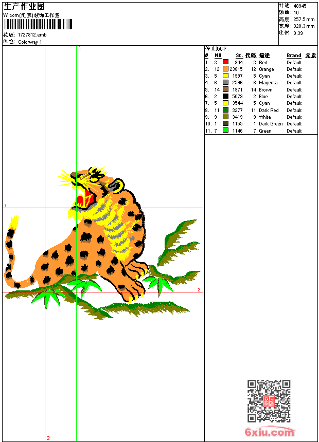 虎-猛虎观望-精品工艺品 点此上传花版兑乐绣币/现金 emb花版参数: 大小:211.00 KB / 尺寸:328*257[毫米] / 针数:48945针 / 线色:10 / 格式:emb / 版本:9 版带文件需绣花软件方可打开,可配色打印导出各种格式或直接上机绣。如无绣花软件可下载1:1模拟效果图。 PNG图片信息:大小:1.3 (MB) /图宽*高:1242x974(像素) 上传作者( jinh*** ) 获得乐绣币:100个 emb下载 1:1图下载 关闭 相似花型推荐: 佛-地藏王乱针绣-工艺精品 虎-猛老虎-骷髅-精品 牛-大角牛-卡通 梅花-鸟-精品工艺品 凤凰-鹰-吉祥 花朵插针 牛头骷髅毛巾绣 毛巾绣裙摆 毛巾绣裙摆 鹿-毛巾绣 孔雀 龙 鹰标 狗标 天使 上一个花样:鹰标 下一个花样:佛-地藏王乱针绣-工艺精品