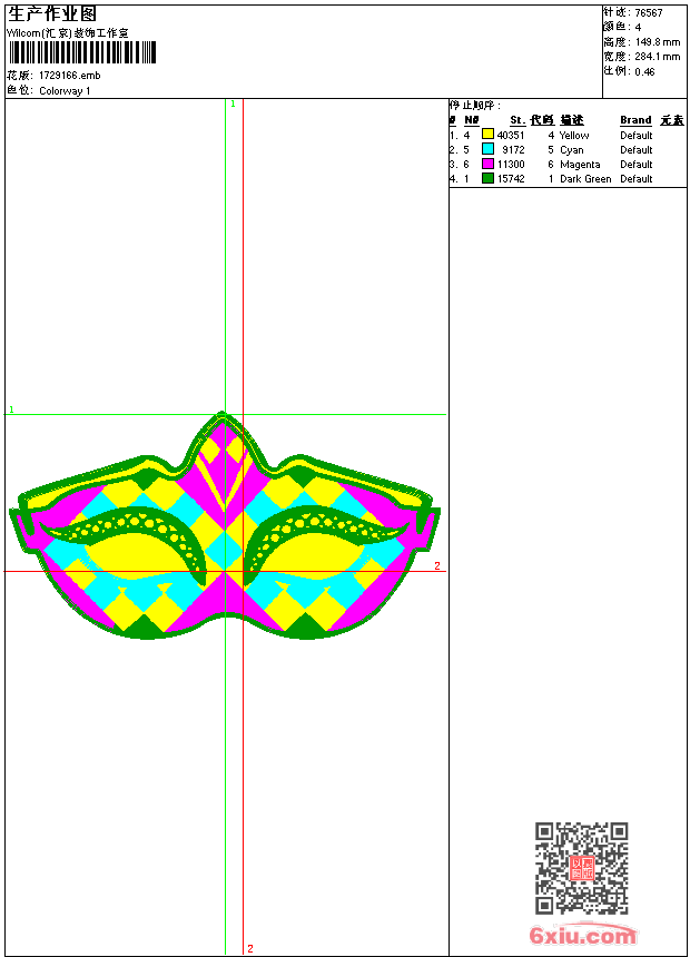 眼镜-T恤-风衣-面具 点此上传花版兑乐绣币/现金 emb花版参数: 大小:125.50 KB / 尺寸:284*150[毫米] / 针数:76567针 / 线色:4 / 格式:emb / 版本:9 版带文件需绣花软件方可打开,可配色打印导出各种格式或直接上机绣。如无绣花软件可下载1:1模拟效果图。 PNG图片信息:大小:0.8 (MB) /图宽*高:1075x567(像素) 上传作者( panx*** ) 获得乐绣币:10个 emb下载 1:1图下载 关闭 相似花型推荐: 虎-跳跳虎-后背老虎-童装卡通 虎-跳跳虎-后背老虎-童装卡通 锚-章仔 锚-章仔 鱼-鲤鱼图-工艺精品 珠片-衣领-多色金片绣 领绣-水溶-衣领 花-家纺花-芍药大花 人物-四大美女-琵琶女-昭君出塞 骷髅头与宝剑 龙-飞龙在天 珠片字母-lame-服装胸前大号双色亮片 珠片-眼睛-服装 眼镜 春夏秋冬[春]工艺精品-牡丹花-鸟 梅兰竹菊-竹工艺精品 上一个花样:鳄鱼章仔-童装 下一个花样:虎-跳跳虎-后背老虎-童装卡通