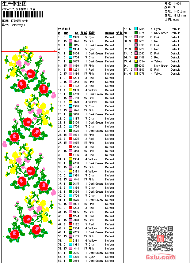 花 匹绣 春暖花开 家纺 点此上传花版兑乐绣币/现金 emb花版参数: 大小:930.50 KB / 尺寸:384*1417[毫米] / 针数:140241针 / 线色:5 / 格式:emb / 版本:8 版带文件需绣花软件方可打开,可配色打印导出各种格式或直接上机绣。如无绣花软件可下载1:1模拟效果图。 PNG图片信息:大小:5.9 (MB) /图宽*高:1452x5361(像素) 上传作者( fmx3*** ) 获得乐绣币:30个 emb下载 1:1图下载 关闭 相似花型推荐: 鸟-大花-牡丹花-窗帘-精品 枕头-欧式抱枕花-古典 羊-小绵羊-童装卡通 小花-唐装小花 领花 虎-毛巾绣老虎头 龙-福 珠片-亮片企鹅 珠片-亮片企鹅 人物-戏据-京剧-脸谱-戏子-布贴 狼-狗-哈士奇-珠片 熊-浣熊-珠片 花 凤凰牡丹-中国风 保罗骑士-polo-十字绣-马 上一个花样:凤凰-中国风 下一个花样:鸟-大花-牡丹花-窗帘-精品