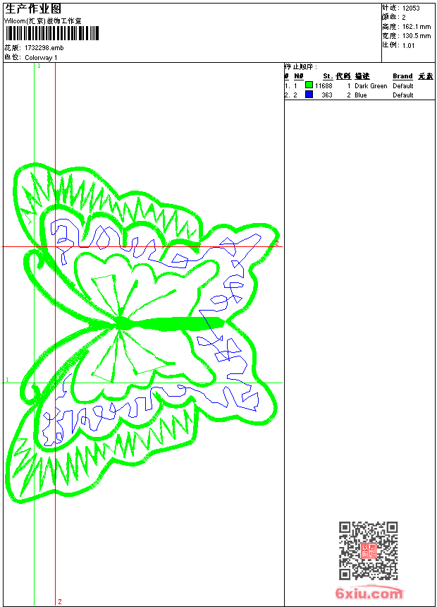 蝴蝶 点此上传花版兑乐绣币/现金 emb花版参数: 大小:54.00 KB / 尺寸:131*162[毫米] / 针数:12053针 / 线色:2 / 格式:emb / 版本:9 版带文件需绣花软件方可打开,可配色打印导出各种格式或直接上机绣。如无绣花软件可下载1:1模拟效果图。 PNG图片信息:大小:0.2 (MB) /图宽*高:494x614(像素) 上传作者( 1507*** ) 获得乐绣币:20个 emb下载 1:1图下载 关闭 相似花型推荐: 龙凤图-凤凰衣吉祥传统戏服 猴子 卡通 动物 猩猩 花草-大花 家纺 花草 鸟 鞋面 孔雀 工艺精品 鹰 奋斗 字画 铭志工艺精品 龙工艺精品 龙工艺精品 鹤送福工艺精品 人物 敦煌佛像工艺精品 鸟花-春夏秋冬工艺精品 鹰 大展鸿图雄鹰展翅工艺精品 水果-菠萝工艺精品 人物 八仙 荣华富贵工艺精品 花 春夏秋冬-秋工艺精品 上一个花样:曲线 复古图案 下一个花样:龙凤图-凤凰衣吉祥传统戏服