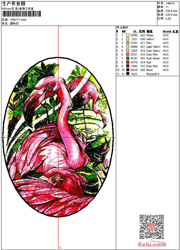 鸟 火烈鸟 精品乱针绣 点此上传花版兑乐绣币/现金 emb花版参数: 大小:899.50 KB / 尺寸:236*340[毫米] / 针数:149010针 / 线色:11 / 格式:emb / 版本:9 版带文件需绣花软件方可打开,可配色打印导出各种格式或直接上机绣。如无绣花软件可下载1:1模拟效果图。 PNG图片信息:大小:2.3 (MB) /图宽*高:893x1285(像素) 上传作者( jcgu*** ) 获得乐绣币:80个 emb下载 1:1图下载 关闭 相似花型推荐: 玫瑰花-乱针绣精品 人物 非洲女人 乱针绣精品 美女 龙 唐装 中国风 福字 唐装 中国风 喜 囍 双喜 精品 字画 猫头-小猫 精品乱针绣 龙头-乱针绣精品 龙 -东方的龙 中国风 鸡 -彩色的公鸡-乱针绣精品 虎头-老虎-乱针绣精品 狗-哈士奇犬-乱针绣精品 瓶-缠枝莲将军罐-花瓶精品装饰 鸟 火烈鸟 精品乱针绣 鸟 火烈鸟 精品乱针绣 风景-九寨风光 -乱针绣精品 上一个花样:风景 大山 名胜 青山 乱针绣精品 下一个花样:玫瑰花-乱针绣精品