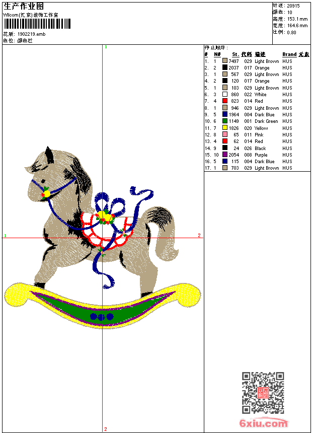玩具木马 点此上传花版兑乐绣币/现金 emb花版参数: 大小:91.50 KB / 尺寸:165*153[毫米] / 针数:20916针 / 线色:10 / 格式:emb / 版本:9 版带文件需绣花软件方可打开,可配色打印导出各种格式或直接上机绣。如无绣花软件可下载1:1模拟效果图。 PNG图片信息:大小:0.4 (MB) /图宽*高:623x580(像素) 上传作者( jcgu*** ) 获得乐绣币:30个 emb下载 1:1图下载 关闭 相似花型推荐: 马 乱针绣精品 马 乱针绣精品 牡丹花 窗帘豪欧 雪人+贴布绣 字母 贴布绣-+音乐+花朵 心形 贴布+花 兔 卡通+贴布 领 中东衣+珠片+贴布 领 仿链目绣+珠片 兔 贴布 开心兔 卡通 女 玩具总动员 戴帽子美女 卡通 兔女郎 贴布 卡通 熊 贴布 卡通 兔子心形 贴布 卡通 上一个花样:马部落 下一个花样:马 乱针绣精品