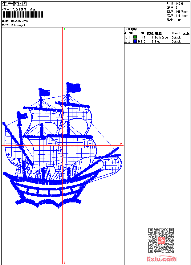 帆船 点此上传花版兑乐绣币/现金 emb花版参数: 大小:56.50 KB / 尺寸:139*147[毫米] / 针数:16299针 / 线色:2 / 格式:emb / 版本:9 版带文件需绣花软件方可打开,可配色打印导出各种格式或直接上机绣。如无绣花软件可下载1:1模拟效果图。 PNG图片信息:大小:0.2 (MB) /图宽*高:527x555(像素) 上传作者( jcgu*** ) 获得乐绣币:20个 emb下载 1:1图下载 关闭 相似花型推荐: 猫 乱针绣精品 可爱小猫 猫 乱针绣精品 可爱小猫 向日葵-乱针绣花瓶 名画油画-工艺精品 头像 人物 美少女工艺精品 乱针绣 风景 春天到來 树林 乱针绣精品 玫瑰芙蓉花 乱针绣 狮子王 乱针绣精品 静物 咖啡 精品乱针绣 海 帆船 乱针绣精品 鹦鹉 鸟 乱针绣精品 鱼 海豚 卡通 乱针绣精品 手指 双手合什 祈祷 乱针绣精品 鱼 海豚 卡通 乱针绣精品 佛字 人物 精品 竹子 青竹两枝 精品 上一个花样:十字绣 精品 在一起 爱情 下一个花样: 猫 乱针绣精品 可爱小猫