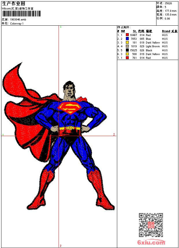 超人 卡通 动漫 点此上传花版兑乐绣币/现金 emb花版参数: 大小:97.00 KB / 尺寸:135*178[毫米] / 针数:35026针 / 线色:5 / 格式:emb / 版本:9 版带文件需绣花软件方可打开,可配色打印导出各种格式或直接上机绣。如无绣花软件可下载1:1模拟效果图。 PNG图片信息:大小:0.3 (MB) /图宽*高:511x673(像素) 上传作者( jcgu*** ) 获得乐绣币:40个 emb下载 1:1图下载 关闭 相似花型推荐: 蝙蝠侠 卡通 动漫 美国队长 卡通 动漫 钢铁侠 7寸 卡通 动漫 钢铁侠 小 卡通 动漫 人物 母亲和婴儿 乱针绣精品 虎头-老虎-乱针绣精品 风景 日落 男女约会 乱针绣精品 人物 鲤鱼和菊花 精品工艺 中国风 人物 睡美人 美女幻想 乱针绣精品 人物 男女 在一起 爱情乱针绣精品 豹头 动物 乱针绣精品 人摩托车 人物卡通 马 -骏马奔腾 乱针绣精品 红酒 巴黎铁塔 静物 乱针绣精品 人物 名人 玛丽莲·梦露 乱针绣精品美女 上一个花样:菊花 乱针绣精品 雏菊 下一个花样:蝙蝠侠 卡通 动漫