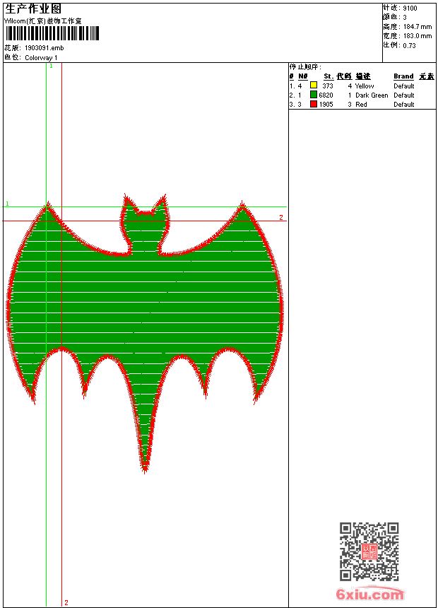 蝙蝠 点此上传花版兑乐绣币/现金 emb花版参数: 大小:40.00 KB / 尺寸:183*185[毫米] / 针数:9100针 / 线色:3 / 格式:emb / 版本:9 版带文件需绣花软件方可打开,可配色打印导出各种格式或直接上机绣。如无绣花软件可下载1:1模拟效果图。 PNG图片信息:大小:0.2 (MB) /图宽*高:693x699(像素) 上传作者( huji*** ) 获得乐绣币:20个 emb下载 1:1图下载 关闭 相似花型推荐: 鸭 鹅 珠片 猫-抽象 乱针绣精品 花朵 中国风 花朵 中国风 花朵 中国风 花朵 蝴蝶 女人与蜘蛛 美女 乱针绣精品 女人 美女 乱针绣精品 抽象 美女 名人 麦当娜 乱针绣精品 头像 女人 美女 乱针绣精品 风景 建筑 雨天 欧美 乱针绣精品 风景 建筑 雨天 欧美 乱针绣精品 风景 意大利雨季 建筑 乱针绣精品 狮子 非洲 乱针绣精品 海 贝壳 装饰 乱针绣精品 上一个花样:鹰-老鹰-鸟 下一个花样:鸭 鹅 珠片