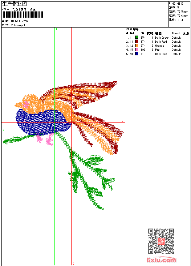 鸟 羽毛 动物 点此上传花版兑乐绣币/现金 emb花版参数: 大小:3.41 MB / 尺寸:73*78[毫米] / 针数:4610针 / 线色:5 / 格式:emb / 版本:9 版带文件需绣花软件方可打开,可配色打印导出各种格式或直接上机绣。如无绣花软件可下载1:1模拟效果图。 PNG图片信息:大小:0.1 (MB) /图宽*高:275x294(像素) 上传作者( APPL*** ) 获得乐绣币:40个 emb下载 1:1图下载 关闭 相似花型推荐: 豹子头 动物 花 中国风 菊花 曲线 抽象 中国传统 如意 鸟 野鸭 凤凰 后背 吉祥 中国风 满幅 凤凰 旗袍 中国风 牡丹花 鸡 精品 公鸡 中国风 虎 老虎 牡丹花 牛仔 玫瑰花 花 童 牛仔裤 蝴蝶花加贴布 鸟花加贴布 骷髅 印弟安人 鹤 牛仔裙 中国风 飞鹤 上一个花样:凤凰 吉祥 中国风 下一个花样:豹子头 动物