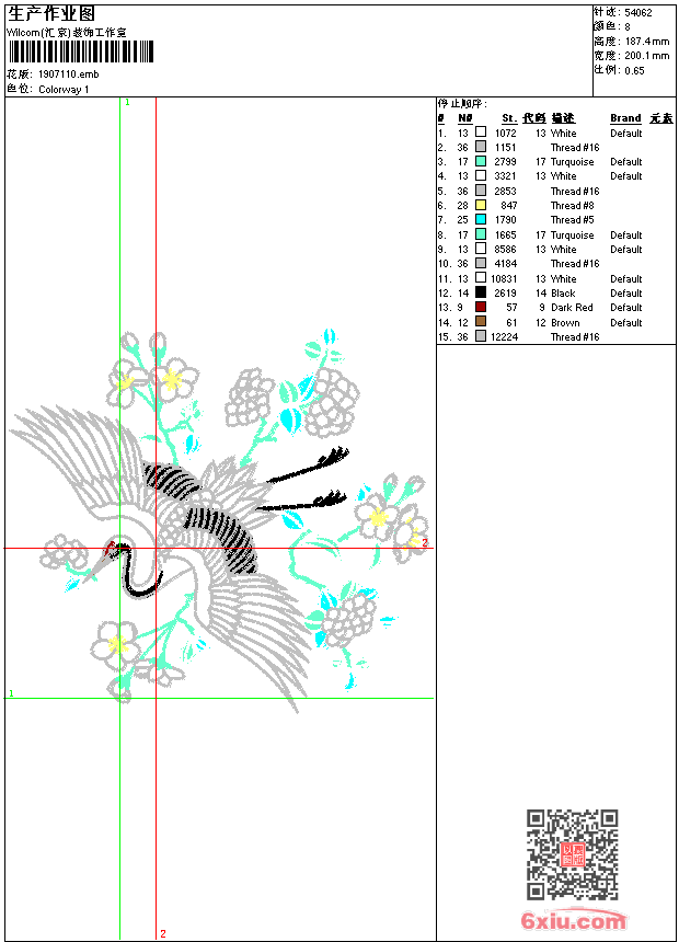 鹤- -仙鹤图 吉祥中国风 点此上传花版兑乐绣币/现金 emb花版参数: 大小:952.50 KB / 尺寸:200*187[毫米] / 针数:54062针 / 线色:8 / 格式:emb / 版本:7 版带文件需绣花软件方可打开,可配色打印导出各种格式或直接上机绣。如无绣花软件可下载1:1模拟效果图。 PNG图片信息:大小:0.6 (MB) /图宽*高:757x709(像素) 上传作者( 飞翔*** ) 获得乐绣币:80个 emb下载 1:1图下载 关闭 相似花型推荐: 虎头-老虎-乱针绣 精品 虎头-老虎-乱针绣精品 虎 卧虎 乱针绣精品 马 奔腾 双马 乱针绣精品 人物 情侣 沙滩 在一起 乱针绣精品 人物 情侣 树林 雨伞下在一起 乱针绣精品 章 商标 logo 范思哲 中国风 福 中国古典花纹福字 民族花 简单 人物 美女 比基尼 冲浪女孩 virtu 章 logo 闪电 大云 牡丹花 蝴碟 牡丹花 龙,佛绣,工艺 双龙戏珠 上一个花样:蝴蝶套装 花朵 下一个花样:虎头-老虎-乱针绣 精品