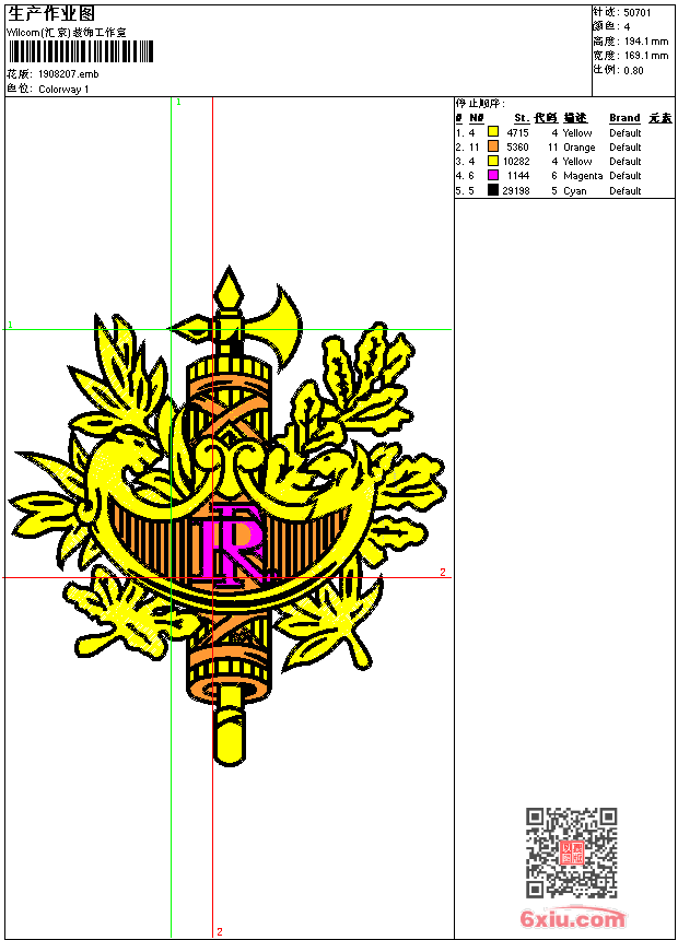 章 法国 国徽 点此上传花版兑乐绣币/现金 emb花版参数: 大小:225.50 KB / 尺寸:169*194[毫米] / 针数:50701针 / 线色:4 / 格式:emb / 版本:9 版带文件需绣花软件方可打开,可配色打印导出各种格式或直接上机绣。如无绣花软件可下载1:1模拟效果图。 PNG图片信息:大小:0.5 (MB) /图宽*高:640x735(像素) 上传作者( 罗子*** ) 获得乐绣币:50个 emb下载 1:1图下载 关闭 相似花型推荐: 鸟 百鸟图 精品 传统 中国风 唐装 裙 裙 风景 房屋 树 中国风 满幅 荷花 传统 精品 花圆形 中国风 精品 孔雀-工艺精品-鸟 鸟 翅膀 展翅高飞 叶子的节奏 rhythm 鹰 章仔 蜜蜂 朋友 friends 章仔 logo 十字绣毛衣 蝴蝶套装 花朵 鹤- -仙鹤图 吉祥中国风 虎头-老虎-乱针绣 精品 虎头-老虎-乱针绣精品 虎 卧虎 乱针绣精品 上一个花样:猴子 毛巾绣 下一个花样:鸟 百鸟图 精品 传统 中国风 唐装 裙