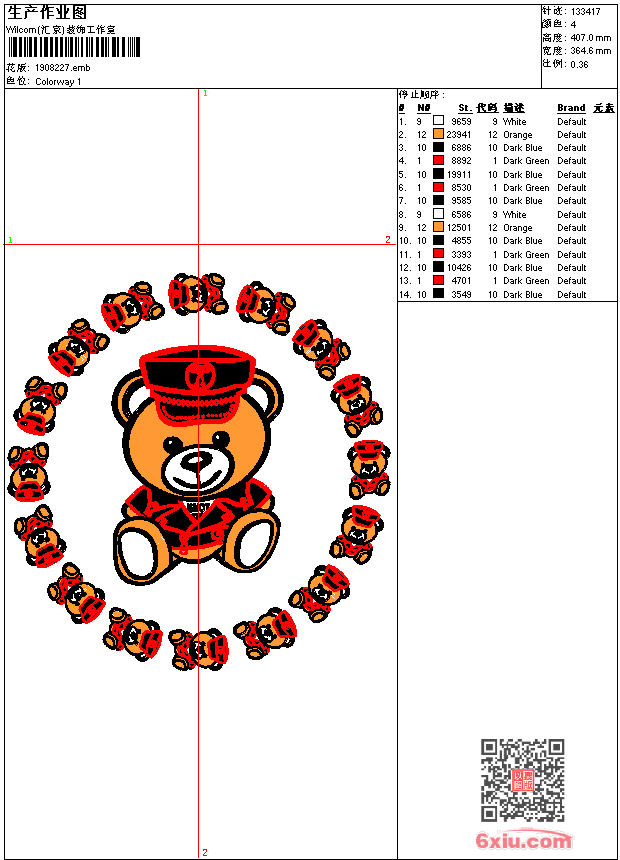 熊 卡通 点此上传花版兑乐绣币/现金 emb花版参数: 大小:736.00 KB / 尺寸:365*407[毫米] / 针数:133417针 / 线色:4 / 格式:emb / 版本:9 版带文件需绣花软件方可打开,可配色打印导出各种格式或直接上机绣。如无绣花软件可下载1:1模拟效果图。 PNG图片信息:大小:2.1 (MB) /图宽*高:1380x1540(像素) 上传作者( 1354*** ) 获得乐绣币:30个 emb下载 1:1图下载 关闭 相似花型推荐: 牡丹花蝴蝶 中国风唐装 旗袍 龙 十二生肖 鸟语花香 梅花 精品 龙 传统 精品 龙凤呈祥 凤凰 汽车坐垫 戏珠 精品 鹤与竹 精品 清明上河图 精品 字画 龙 花瓶 精品 牡丹花 中国风唐装 旗袍 章仔 越野 风云 汽车 suv jeep 孔雀-工艺精品-鸟 花 福寿 传统 吉祥 蝙蝠 中国风 牡丹花 唐装 蝴蝶 花 凤凰 汽车坐垫 精品 唐装 牡丹花 牡丹花 唐装 蝴蝶 花 中国风 上一个花样:龙 传统 精品 下一个花样:牡丹花蝴蝶 中国风唐装 旗袍