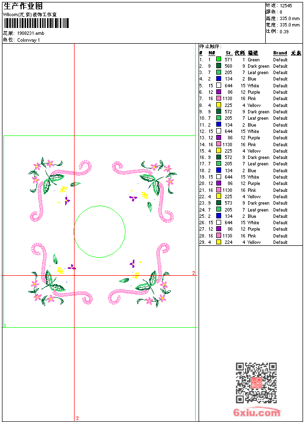 台布 点此上传花版兑乐绣币/现金 emb花版参数: 大小:144.00 KB / 尺寸:335*335[毫米] / 针数:12545针 / 线色:8 / 格式:emb / 版本:9 版带文件需绣花软件方可打开,可配色打印导出各种格式或直接上机绣。如无绣花软件可下载1:1模拟效果图。 PNG图片信息:大小:0.4 (MB) /图宽*高:1268x1268(像素) 上传作者( 罗子*** ) 获得乐绣币:10个 emb下载 1:1图下载 关闭 相似花型推荐: 龙 传统 精品 熊 卡通 牡丹花蝴蝶 中国风唐装 旗袍 龙 十二生肖 鸟语花香 梅花 精品 龙 传统 精品 龙凤呈祥 凤凰 汽车坐垫 戏珠 精品 鹤与竹 精品 清明上河图 精品 字画 龙 花瓶 精品 牡丹花 中国风唐装 旗袍 章仔 越野 风云 汽车 suv jeep 孔雀-工艺精品-鸟 花 福寿 传统 吉祥 蝙蝠 中国风 牡丹花 唐装 蝴蝶 花 上一个花样:台布2 下一个花样:龙 传统 精品