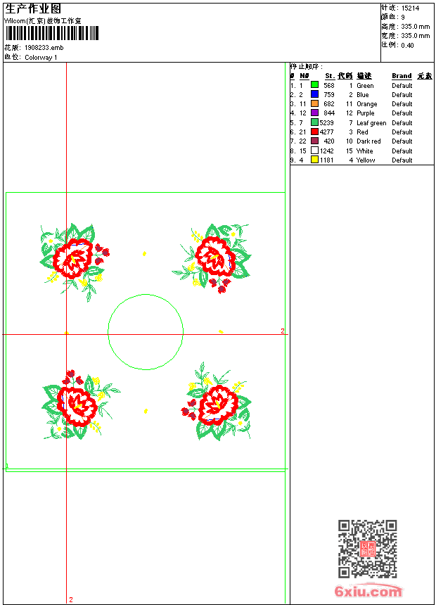 台布3 点此上传花版兑乐绣币/现金 emb花版参数: 大小:113.00 KB / 尺寸:335*335[毫米] / 针数:15214针 / 线色:9 / 格式:emb / 版本:9 版带文件需绣花软件方可打开,可配色打印导出各种格式或直接上机绣。如无绣花软件可下载1:1模拟效果图。 PNG图片信息:大小:0.5 (MB) /图宽*高:1268x1268(像素) 上传作者( 罗子*** ) 获得乐绣币:10个 emb下载 1:1图下载 关闭 相似花型推荐: 台布2 台布 龙 传统 精品 熊 卡通 牡丹花蝴蝶 中国风唐装 旗袍 龙 十二生肖 鸟语花香 梅花 精品 龙 传统 精品 龙凤呈祥 凤凰 汽车坐垫 戏珠 精品 鹤与竹 精品 清明上河图 精品 字画 龙 花瓶 精品 牡丹花 中国风唐装 旗袍 章仔 越野 风云 汽车 suv jeep 孔雀-工艺精品-鸟 花 上一个花样:满幅水溶 下一个花样:台布2