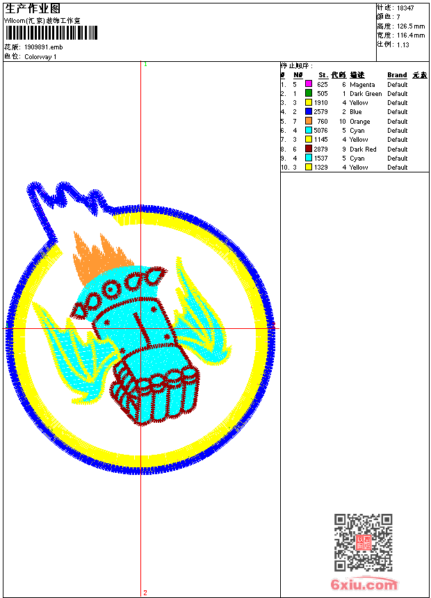 翅膀 火 章仔 点此上传花版兑乐绣币/现金 emb花版参数: 大小:105.00 KB / 尺寸:116*127[毫米] / 针数:18347针 / 线色:7 / 格式:emb / 版本:9 版带文件需绣花软件方可打开,可配色打印导出各种格式或直接上机绣。如无绣花软件可下载1:1模拟效果图。 PNG图片信息:大小:0.2 (MB) /图宽*高:441x479(像素) 上传作者( 李凯*** ) 获得乐绣币:10个 emb下载 1:1图下载 关闭 相似花型推荐: 章仔 死神 飞机 章仔 隐形战机 骷髅 章仔 骷髅 章仔 字母章 美女 章 牛头 章 虎豹头 章 bad kids 手指 旗帜 章 狮头 章 翅膀 章 猫 章 虎 跳跳虎 卡通 米老鼠 经典卡通 狮标 双狮争霸 上一个花样:马 章仔 飞马 下一个花样:章仔 死神