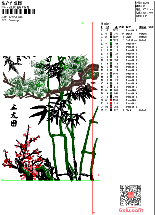 梅竹松 三基友图 精品 点此上传花版兑乐绣币/现金 emb花版参数: 大小:143.50 KB / 尺寸:120*157[毫米] / 针数:27702针 / 线色:12 / 格式:emb / 版本:9 版带文件需绣花软件方可打开,可配色打印导出各种格式或直接上机绣。如无绣花软件可下载1:1模拟效果图。 PNG图片信息:大小:0.3 (MB) /图宽*高:456x595(像素) 上传作者( magi*** ) 获得乐绣币:50个 emb下载 1:1图下载 关闭 相似花型推荐: 鱼 乱针绣精品 年年有余 鸟 荷花 传统 精品 鸟 相偎相依 鸟 乱针绣 精品 马 月亮 女孩 天马行空 夜空 精品 风景 小船人家 水乡 精品 桥 靓花 百合 精品 鹤- 海浪 太阳-仙鹤图 吉祥中国风 鹤- -仙鹤图 吉祥中国风 虎头 虎头 标 凤凰 金凤呈祥 装饰 植物花卉 豹 人物 章仔 上一个花样:梅兰竹菊 四合一 全套 精品 中堂工艺品挂画 字画 诗词 下一个花样:鱼 乱针绣精品 年年有余