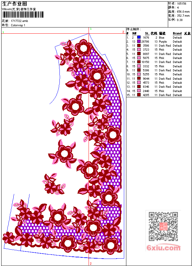满副衣襟女装 点此上传花版兑乐绣币/现金 emb花版参数: 大小:784.50 KB / 尺寸:353*656[毫米] / 针数:105156针 / 线色:4 / 格式:emb / 版本:9 版带文件需绣花软件方可打开,可配色打印导出各种格式或直接上机绣。如无绣花软件可下载1:1模拟效果图。 PNG图片信息:大小:2.9 (MB) /图宽*高:1334x2482(像素) 上传作者( *** ) 获得乐绣币:1个 emb下载 1:1图下载 关闭 相似花型推荐: 中老年花蝴蝶 美女与玉兔 仙童麒麟神话古典 大幅乱花 经典唐装花 唐装菊花传统画 牡丹花中老年服装 男装骑马POLO 布达拉宫-风景精品挂画 龙 熊 清朝朴子-武将官服戏服绣花 时装花型 衣领 窗纱绣 佛绣地藏王菩萨 上一个花样:相思鸟 下一个花样:中老年花蝴蝶