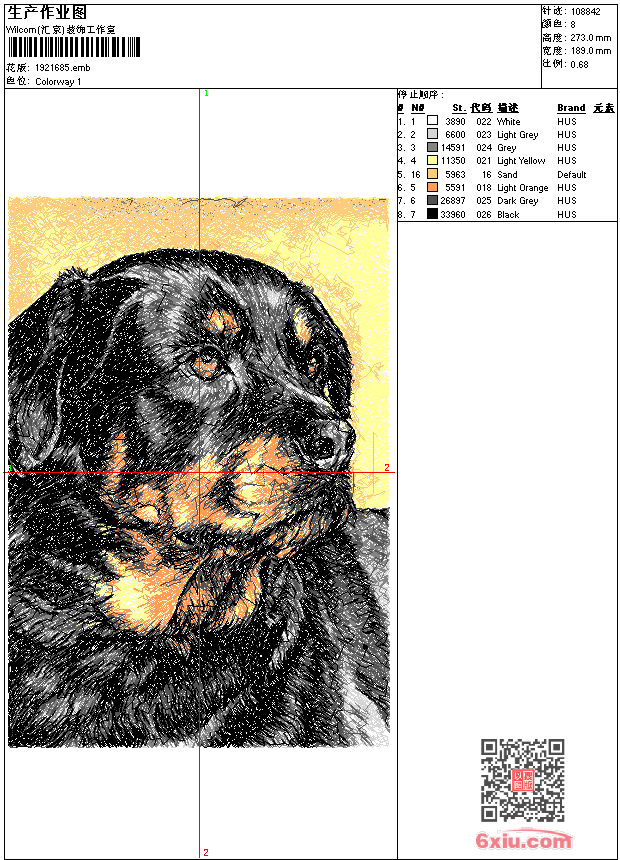 狗 罗威纳犬 宠物犬 乱针绣精品 点此上传花版兑乐绣币/现金 emb花版参数: 大小:466.50 KB / 尺寸:189*273[毫米] / 针数:108842针 / 线色:8 / 格式:emb / 版本:9 版带文件需绣花软件方可打开,可配色打印导出各种格式或直接上机绣。如无绣花软件可下载1:1模拟效果图。 PNG图片信息:大小:1.9 (MB) /图宽*高:715x1033(像素) 上传作者( jcgu*** ) 获得乐绣币:70个 emb下载 1:1图下载 关闭 相似花型推荐: 狗 拉布拉多 宠物犬 黑狗 乱针绣精品 狗 巴塞特狗 宠物犬 乱针绣精品 人物 财神到 工艺精品 物品 静物 纹线 缝衣机 sewing machine 凤凰 保罗 polo 骑马 男 小马仔 物品 静物 纹线 缝衣机 鹿头 贴布 童装 象 贴布小象 童装 古驰 标志 logo 蜜蜂 GUCCI 鹿 贴布云彩小鹿 鸟 花 围巾 衣裤鞋通用 景色 锦绣山河 雪山 瀑布 精品 挂画 龙 狗 宠物 乱针绣 精品 金毛 拉布拉多 上一个花样:狗 牛头犬 宠物犬 乱针绣精品 下一个花样:狗 拉布拉多 宠物犬 黑狗 乱针绣精品